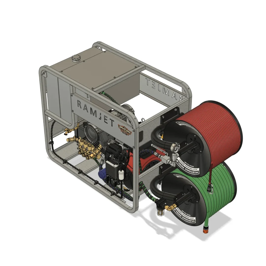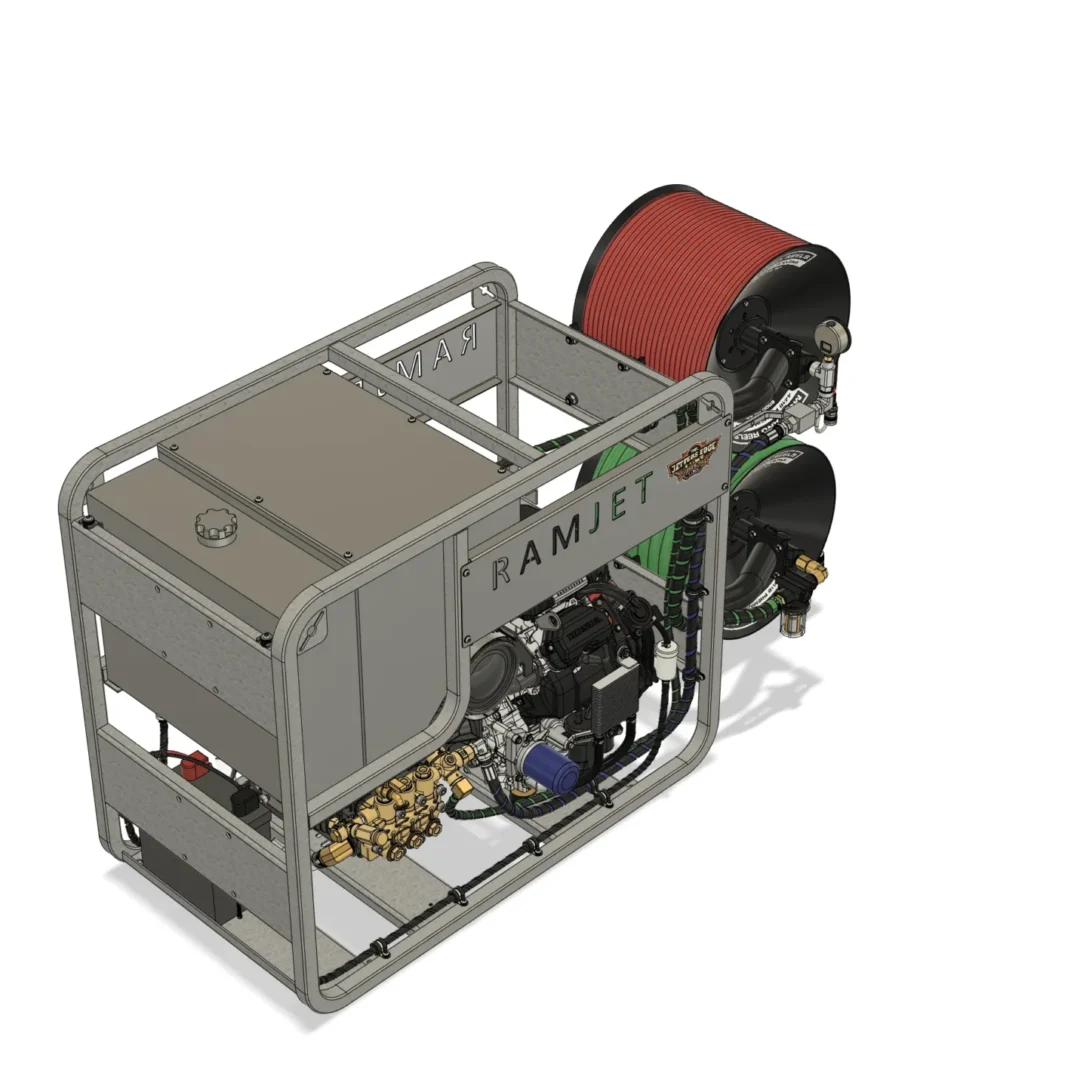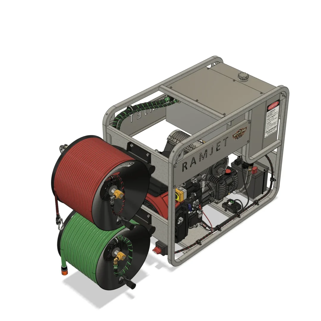 RAMJET 5000 היא מכונה מקצועית לפתיחת סתימות בצנרת ביוב, המספקת עוצמה יוצאת דופן בזכות מנוע Honda iGX800 ומערכת לחץ של 5,000 PSI עם זרימה של 25 ליטר לדקה.