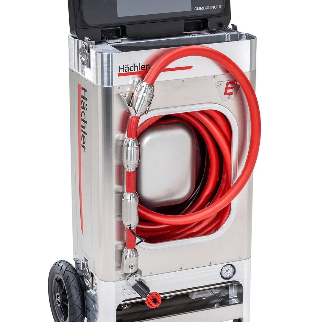 מופעל בסוללת 54V עם סליל צינור עד 60 מטר, מסך 12" ומצלמה מתכווננת.